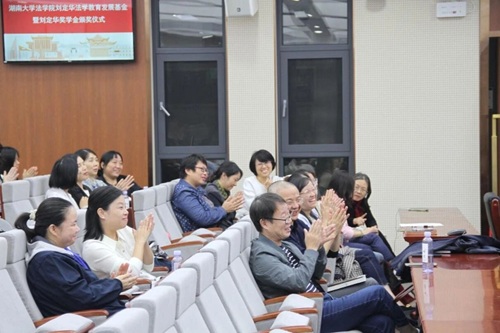 陈锦红老师作为获奖代表发言。她首先向设立刘定华法学教育发展基金的各位发起人和捐赠人表示感谢,并表达了获得这份荣誉的感激和对刘定华老师的敬意,刘老师在法学教育事业上的矢志不渝,一直是后辈们前行的灯塔和标杆。陈老师表示因为热爱选择了讲台,在法学教育事业上的付出与38年的教师生涯成就了自己一生是湖大法学人,她坚信教育是点燃希望的事业,值得自己奋斗终身。她最后表达,对于无码av