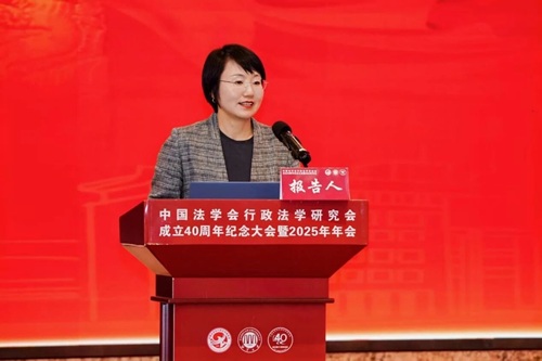 在大会交流环节中,罗英老师就“分论坛(五):行政法诸领域的法典化及课题”的研讨情况作了总结报告。罗老师以“过去—现在—未来”的时间轴为线索,通过对知网文献进行可视化分析,对第五分论坛的研究意义与代表性进行了高度肯定。在此基础上,罗老师对第五分论坛的核心议题进行了高度概括:一是行政法典化宜采“适度体系化”定位,以“限缩法典说”保持开放性;二是行政法典化呈现“领域先行”的立法模式,宜采用多元法典化路径;三是教育、环境、数字政府等公共议题呈现“多元利益共生”特征,需要通过程序法实现分配正义;四是法典化对新兴问题需积极予以回应。最后,罗老师从理论与实践两方面对行政法典化的未来方向作出展望,提出“行政法典化的未来,不在于编成‘一部完备的法典’,而在于形成‘一种持续生成法治秩序的能力’”这一观点,认为它“既是行政法学理论现代化的试金石,也是国家治理法治化的战略支点”。