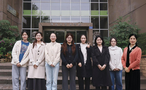 (从左至右依次为:胡稼慧、何雪、杨斐冉,张炀,张莹慧、邹艳萍、甘欣平,指导老师郭哲教授)