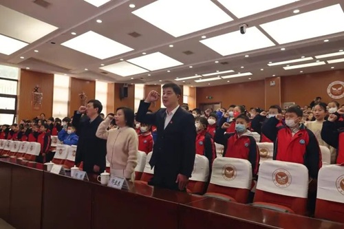 会议伊始,主持人程宸同学引入本次活动的主题“预防未成年人犯罪”并介绍到场嘉宾。金鹰小学副校长邓亚东进行发言,他强调了法律离我们并不遥远,倡导同学们做认真的学习者、文明的参与者、坚定的践行者。随后,全体师生庄严进行宪法宣誓。