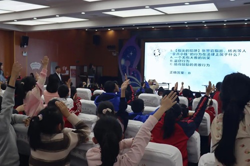 的学生帮助了小学生树立正确法律观念,规范自身行为。使他们能在价值观形成的关键期,及早树立规则意识与法律底线,学会识别风险、保护自己,避免因无知或冲动误入歧途。对学校和社会,则能营造尊法学法的校园氛围,从源头减少不良行为,降低犯罪隐患,促进家庭、学校、社会协同共育。这不仅是保护未成年人的关键举措,更是筑牢社会未来安全防线的基石,实现了对个体成长的守护与社会长远安宁的共赢。