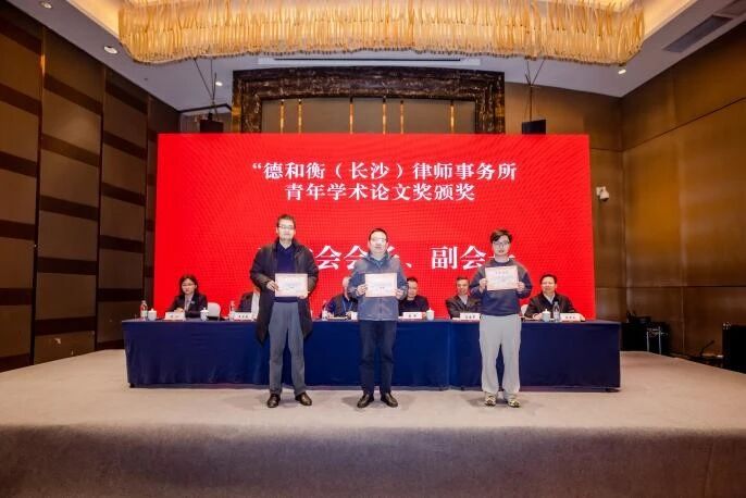 大会闭幕式阶段由新一届理事会副会长、湖南省律师协会会长、湖南湘军麓和律师事务所李含英主任主持。新一届理事会副会长、湖南工商大学蒋科教授宣读“德和衡(长沙)律师事务所青年学术论文奖”的获奖名单,研究会各位领导给获奖者颁奖。屈茂辉教授对本次年会活动作会议总结,并再次向与会人员和会务人员表达衷心的感谢与新年祝福。