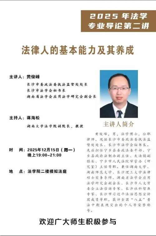 2025年法学专业导论第二讲于2025年12月15日于模拟法庭成功举办。长沙市委政法委执法监督处处长、长沙市法学会秘书长、无码av