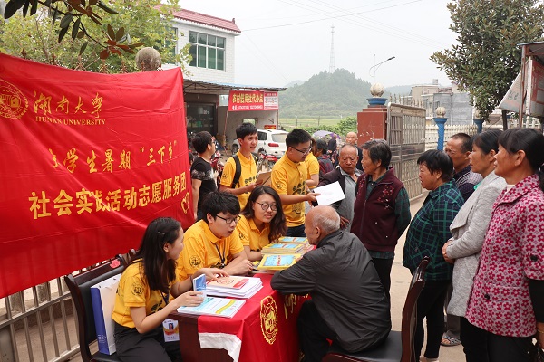 “三下乡”社会实践团在宁乡双凫铺镇泉井村开展以“普法宣传青年行”为主题的“三下乡”社会实践与志愿服务活动,并慰问洪灾受灾群众。