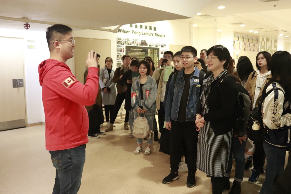 1月9日交流团师生对香港中文大学进行了访问,中大老师在校会议厅首先为同学们举行了一个简单的欢迎仪式,然后五位分别来自香港、内地、台湾的香港中文大学的同学带领师生一行在中大校园内参观。在参观过程中,同学们领略了天人合一的美景,走过了图书馆门前的百万大道,了解到中大过去55年的发展历史,以及其从建校时就定下的结合传统与现代,融合中国与西方的理念基调,同学们对中大留下了更加深刻的印象。